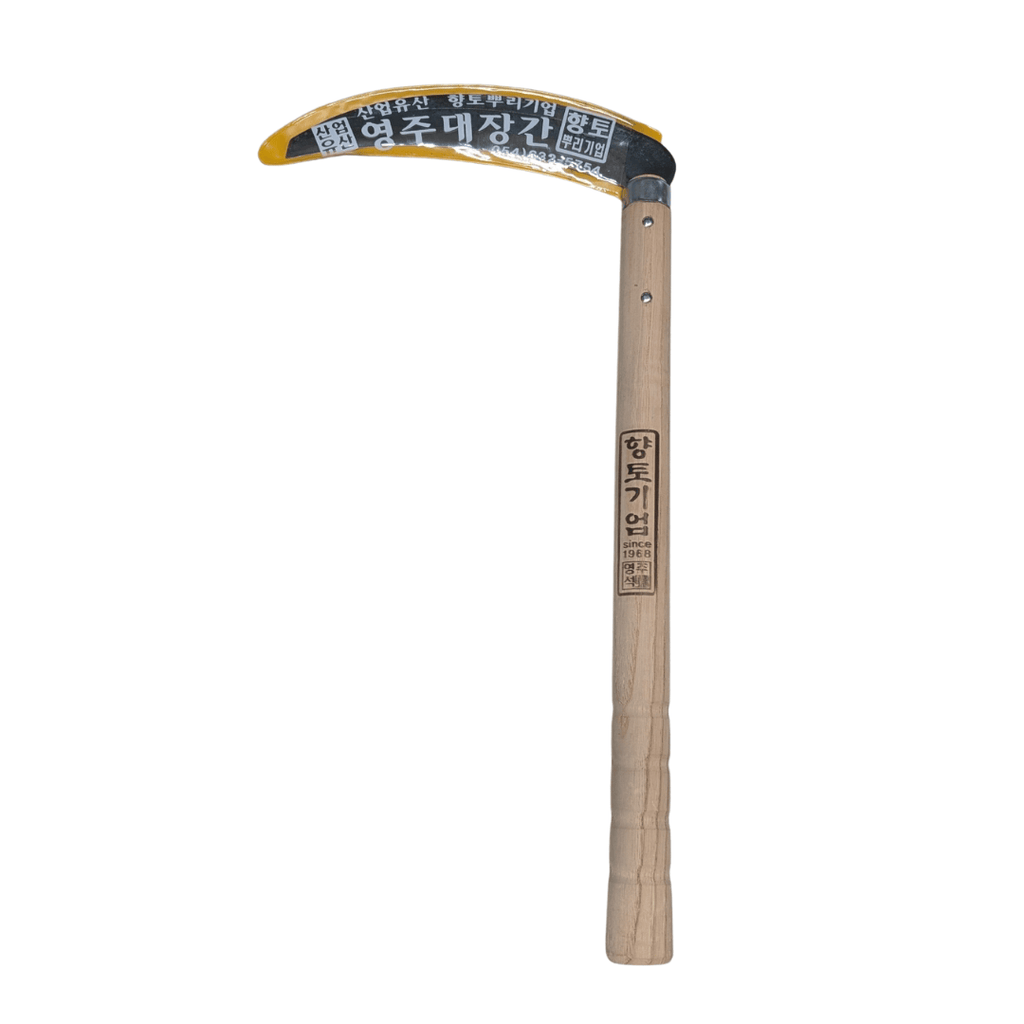 A scythe is for sweeping large areas, while this sickle is for detail work. Compared to hardware-store models, the Youngju sickle offers better steel, a sharper edge, and more durability for long-term use.